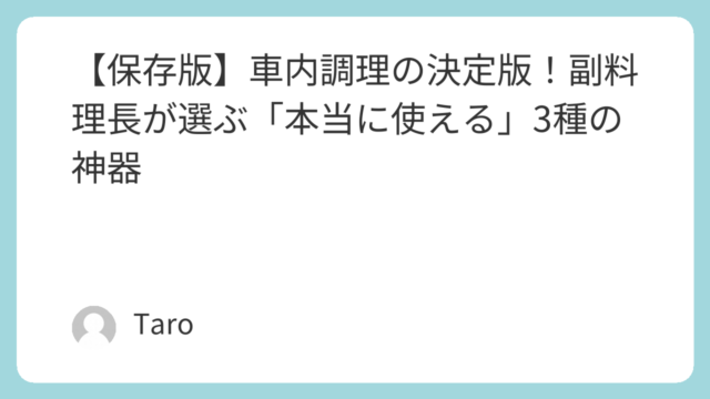 未分類 【保存版】車内調理の決定版!副料理長が選ぶ「本当に使える」3種の神器