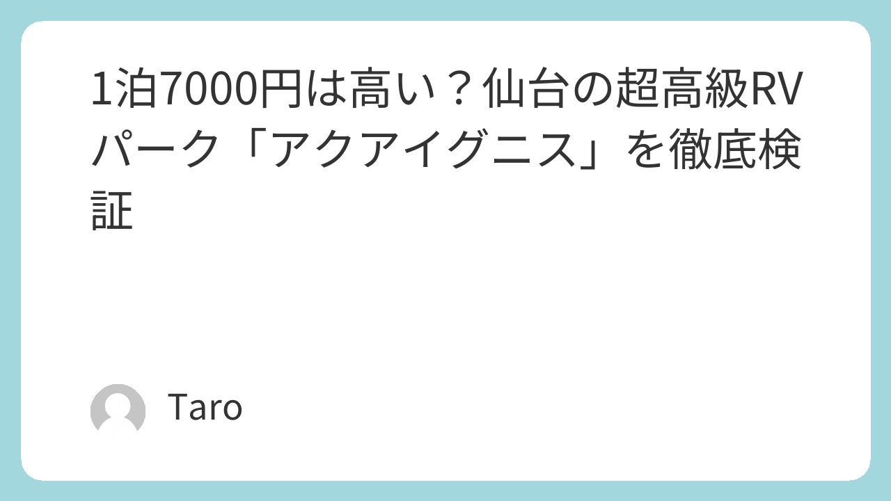 先日、知人から「仙台に1泊7000円もする、賛否両論な高級RVパークがある」という話を耳にしました。