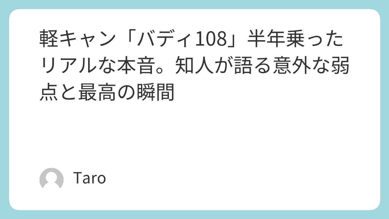 本日は、その彼が180日間使い倒して分かった、軽キャン生活のリアルな裏側をシェアしようと思います。